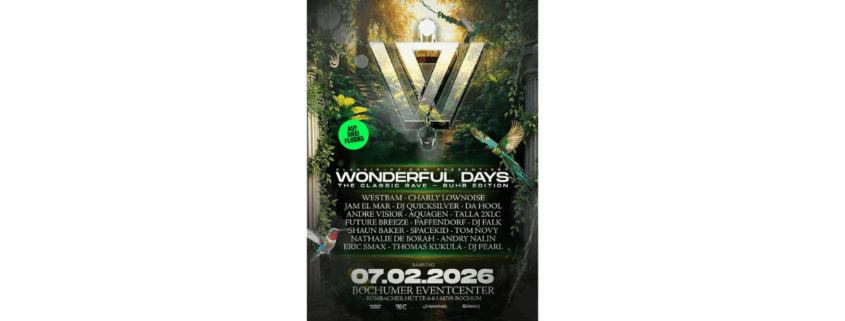 Mit „Wonderful Days – The Classic Rave“ kommt am 07. Februar 2026 eines der beliebtesten Oldschool-Eventformate erstmals nach Bochum – und verwandelt das legendäre Bochumer Event Center für eine Nacht in einen pulsierenden Rave-Tempel.
